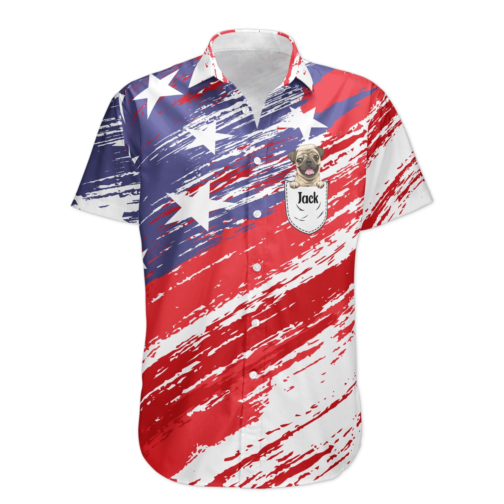 Dog In Pocket American Flag Patriotic – Personalized Hawaiian Shirt