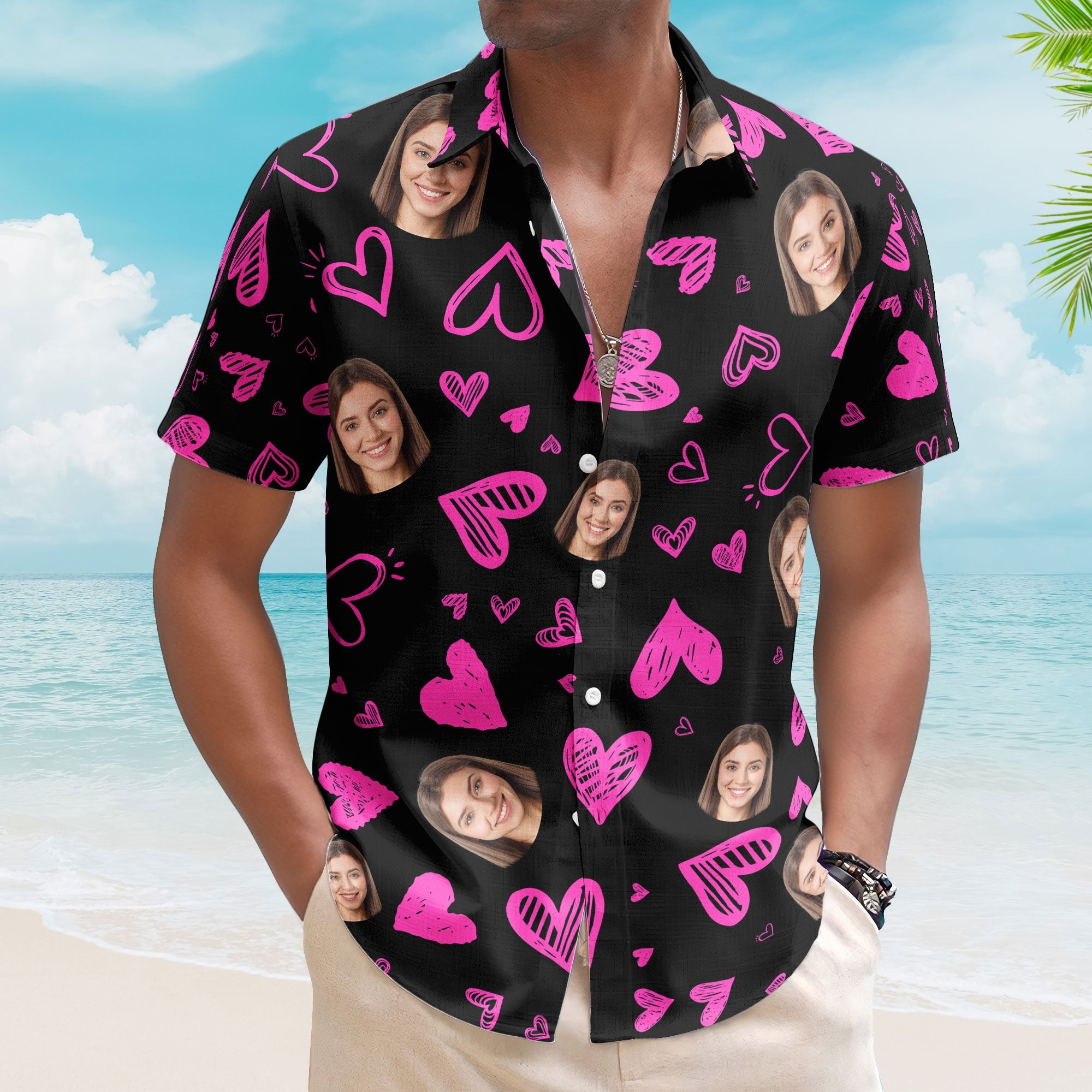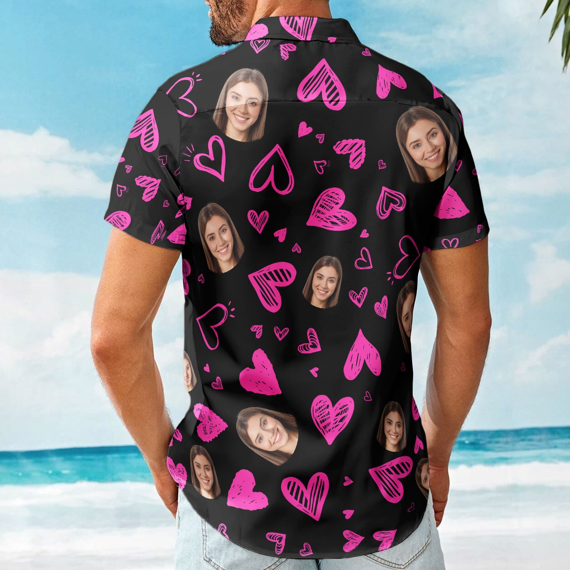 Introducing our custom photo Hawaiian shirts – a whimsical blend of style and humor, perfect for adding a touch of laughter to your loved one’s wardrobe. Personalize this shirt with a funny face and a heart pattern, creating a unique and playful garment that’s ideal for Valentine’s Day or any special occasion. Whether you’re shopping for your husband, boyfriend, or a cherished male friend, this shirt is a hilarious and heartwarming gift that will surely leave them grinning from ear to ear.